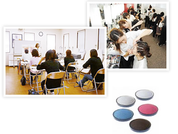 ■充実のメイクアップコースでは初級からプロフェッショナルまで、実践とともに学べます。